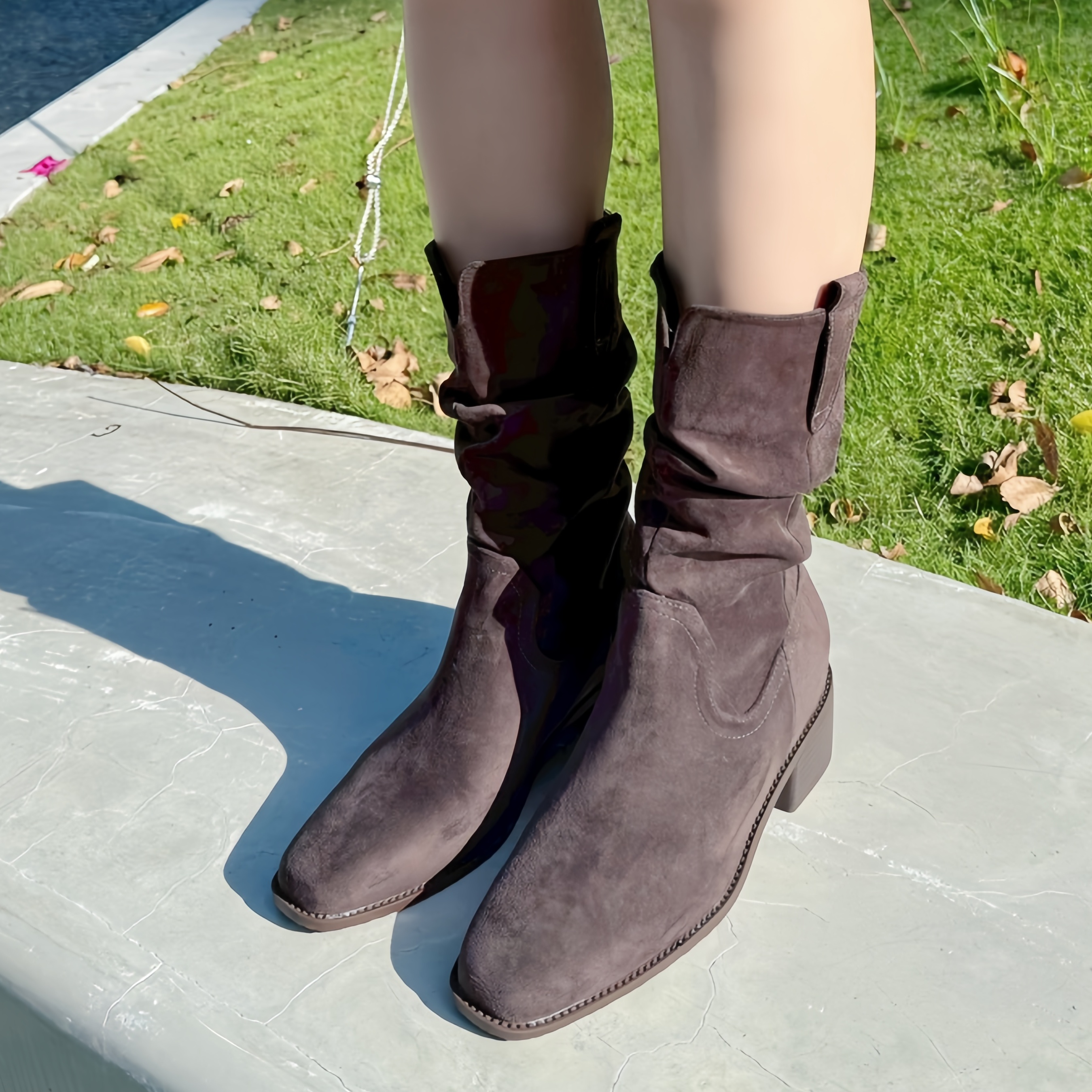 率性V字西部中筒跟靴
