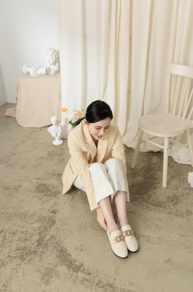 大尺碼透膚編織網面瑪莉珍平底鞋