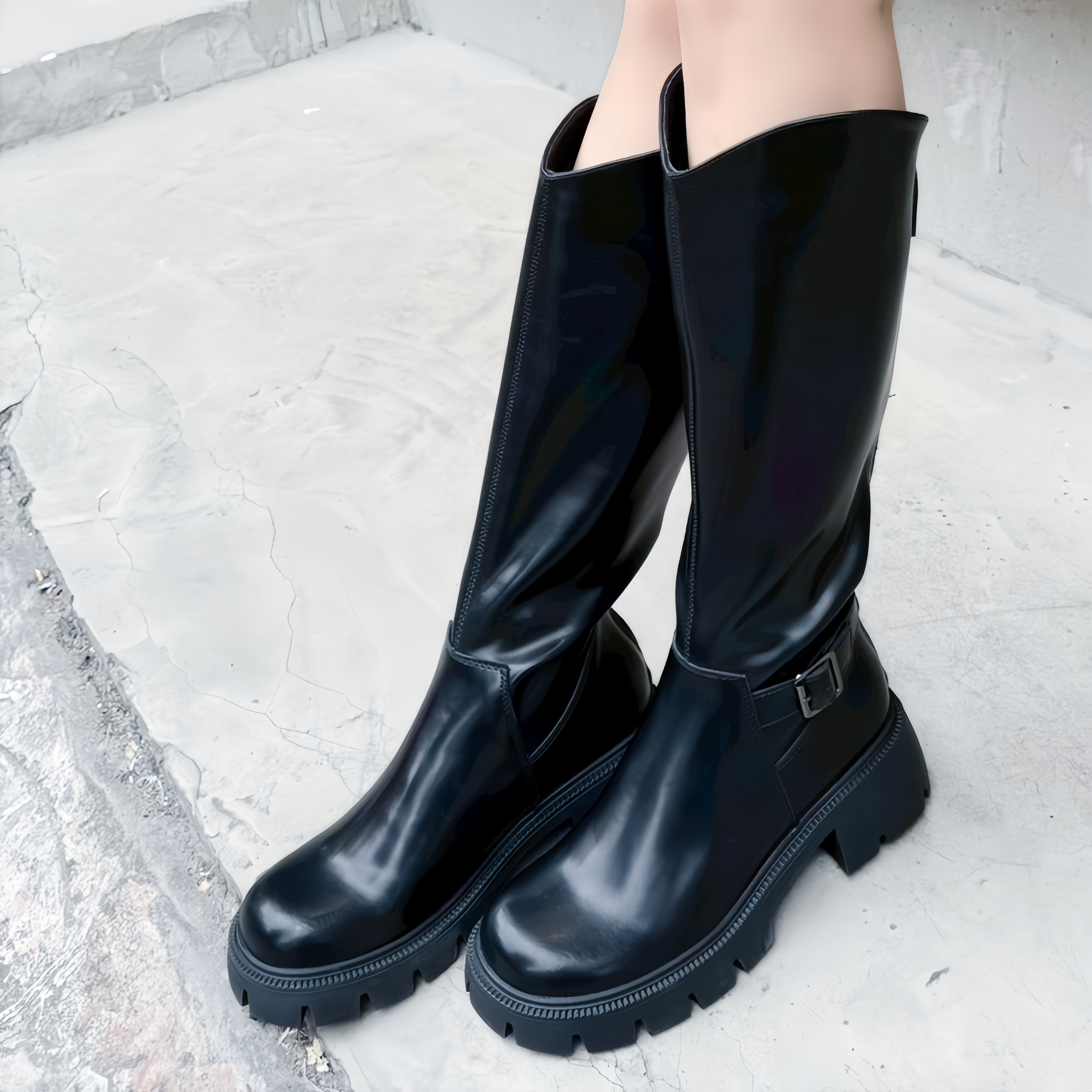 以修飾的V字筒加上側邊金屬扣設計,整雙低調俐落。