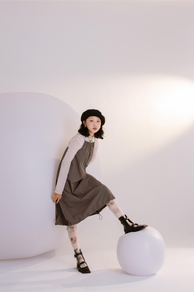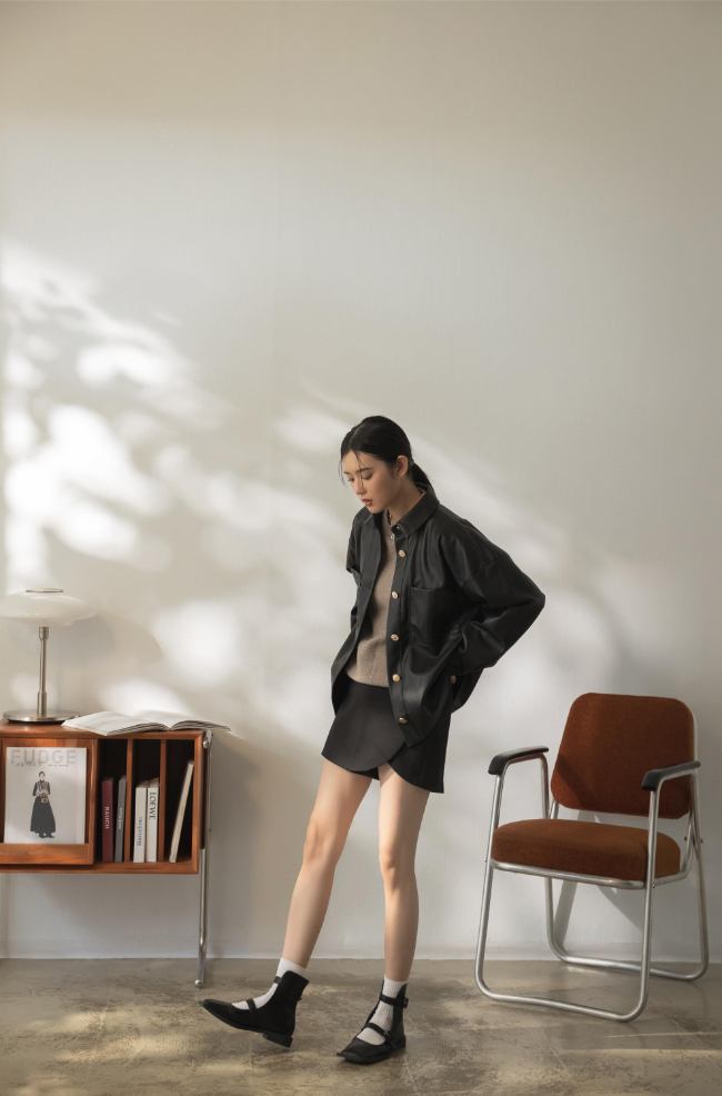 兩段式穿搭帶來獨特衝擊感,創造出迷人的視覺效果,揉合了低調的方頭設計,在簡約中創造了迷人的復古時尚,演繹出個性又不失堅毅的溫柔感。