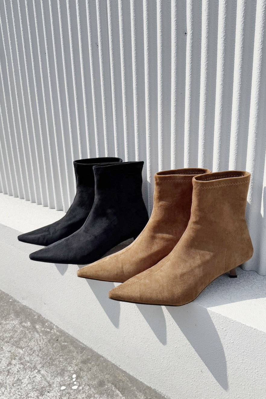 柔軟的絨布鞋面材質,低調的小貓跟設計,打造質感與優雅日常場合都適合穿搭。