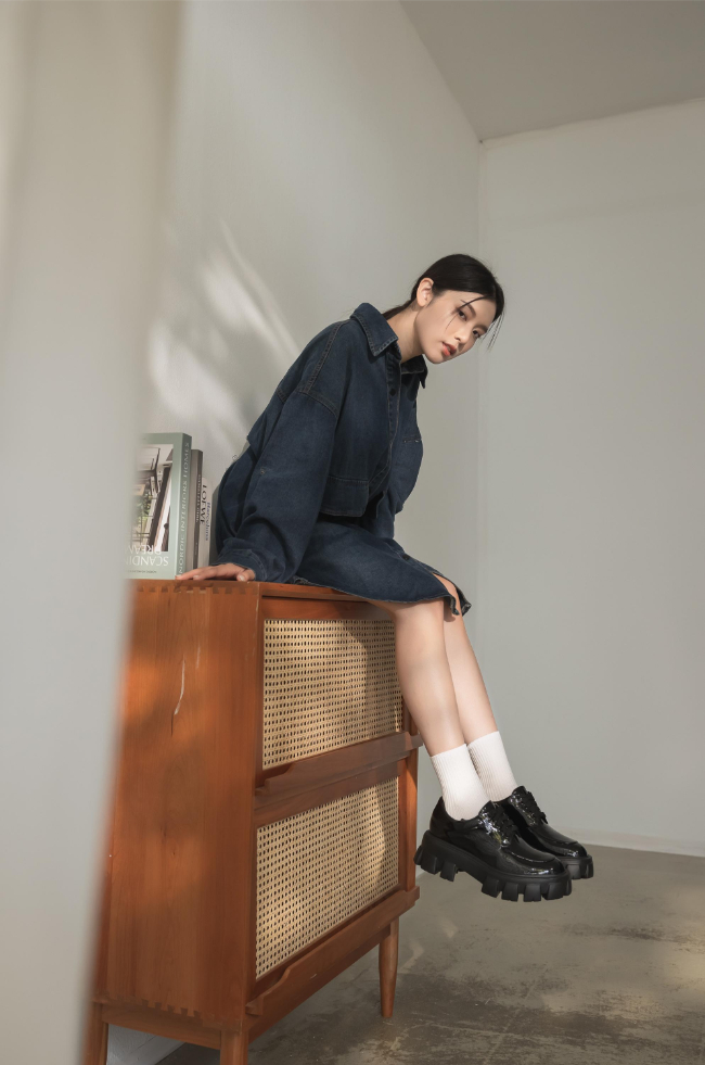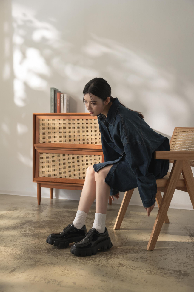 漆皮鞋面摩登感十足,誇張的厚底鞋面更顯時髦。簡約大氣的經典輪廓加上豪邁的大底高度,透露出奔放不拘的率性活力。